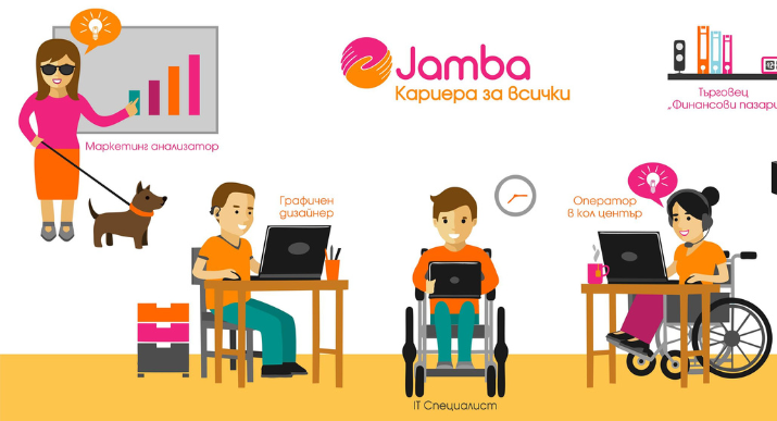 Proiectul Jamba oferă training persoanelor cu dizabilități din Bulgaria care caută un loc de muncă și îi conectează cu angajatorii interesați. Întreaga filozofie a proiectului se bazează pe recunoașterea faptului că persoanele cu dizabilități au active și seturi de abilități unice. Prin urmare, folosește termenul „persoane cu abilități diverse” ca unul mai inclusiv și pozitiv. Jamba oferă suport individual persoanelor cu abilități diverse în momentul aplicării pentru locuri de muncă și îndrumare adaptată pe tot parcursul procesului de aplicare. Inițiativa are și o platformă online concepută pentru a conecta solicitanții cu abilități diverse cu angajatori.